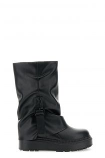 Faux leather ankle boots with a wraparound cuff and internal zip. Urban design with a decorative buckle and 3.5 mm sole. Leather insole for maximum comfort.