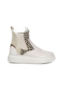 Ankle boots with side stretch panel that facilitates the fit and upper with spotted appliqués and patent leather inserts.