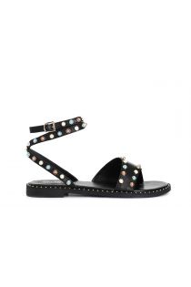Asymmetric leather sandals with lace up and cabochon. lining and insole are in leather. the heel is 2 cm high. comfortable to wear and easy to match.