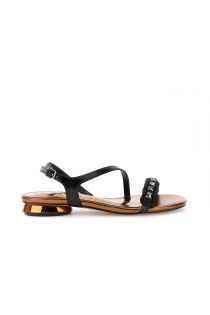 Asymmetrical laminated leather-effect sandals with a rhinestone-embellished braided strap. comfortable insole and 1.5 cm high sole. elegant and bright perfect for chic summer looks.