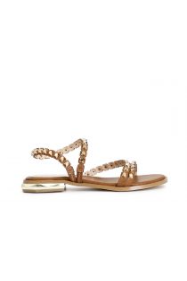 asymmetrical sandals with faceted studs tan