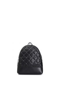 Quilted backpack with rivets. padlock with logo placed on the front. double zip opening. large zipped front pocket. adjustable shoulder straps.