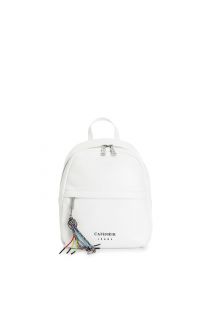 backpack with embroidered logo and personalised key ring white