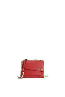 Shoulder bag with asymmetric flap and metal lettering double-length chain shoulder strap front patch pocket and padded shoulder strap for maximum comfort.