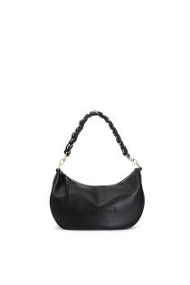 Bag with cafènoir firenze logo in relief and woven chain handle. zipper closure. removable shoulder strap.