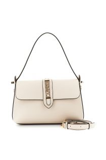Elegantly designed faux leather shoulder bag with a structured flap covered eyelets and a metal lettering loop. featuring a removable shoulder strap it's ideal for everyday looks and formal occasions. dimensions: 27 cm (length) × 19 cm (height) × 9.5 cm (depth)