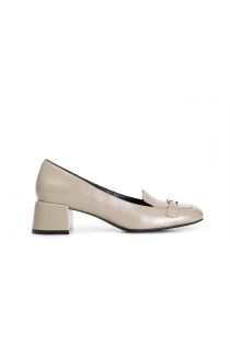 Ballerina with rounded toe in naplak leather with tray and personalized accessory. 45 mm high banded heel. the insole is in leather. ideal in combination with multiple looks from morning to evening.
