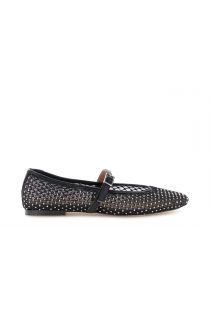 Ballerinas made of transparent mesh with micro studs featuring an adjustable buckle strap and a pointed toe. a 0.90 cm heel and leather insole. lightweight and feminine they stylishly complete both elegant looks and everyday outfits.
