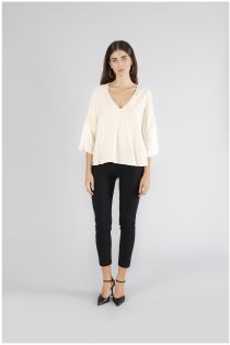 bi-material blouse with "v" neckline butter