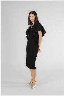 Two-material dress with round neckline and ruffles at the shoulders. dress with a romantic and feminine style.