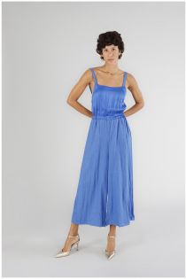 Bi-material tracksuit with palazzo trousers in mixed linen fabric and viscose satin top. jumpsuit with shoulder pads. elastic waist that emphasizes the waistline.