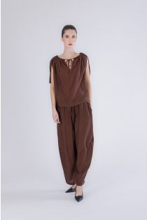 Oversized blouse with a flowing design and wide armholes that curve over the shoulders creating an elegant drape. soft lines and a contemporary style ideal for refined and versatile day and evening looks. the model is 175 cm tall and wears a size s. fit: comfort.