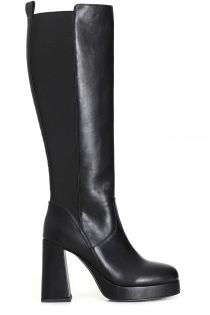 High stretch boot in imitation leather with elastic on the back. 22 mm platform and 100 mm high heel. rounded shape. the insole is in leather. all this gives balance between height beauty and comfort.