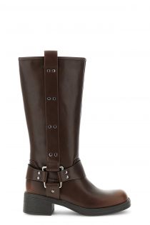 Boot with spur and buckles. 47 mm high heel. the insole is in leather. with a strong design they give a bold and practical look.