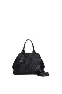 Bowling bag with irregular weave snap fastening tubular handles and pendant with cafènoir customisation.