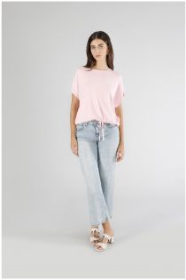 Box-shaped sweater with drawstring at the bottom made of viscose yarn. perfect basic item combined with a pair of jeans or a maxi skirt.