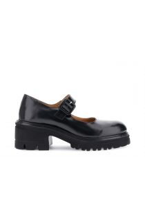 Brushed leather pumps with a buckle. Leather lining and insole for extra comfort. A 2.5 cm platform and 5.5 cm heel create a sculpted sole. Perfect for bold, feminine looks.