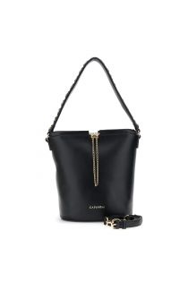 bucket bag with drawstring embellished with metal chain black