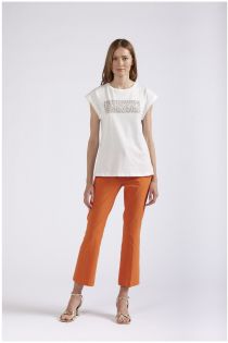 Sleeveless t-shirt in stretch cotton jersey. the graphics reproduce the cafènoir logo through rhinestones in a contrasting colour.