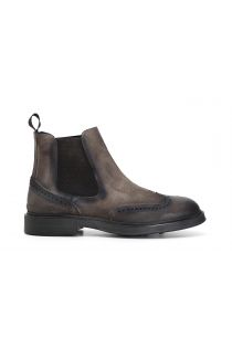 CafèNoir vintage: Suede wingtip Derby ankle boots with perforation
