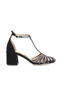 Microfibre and rhinestone 't' cage sandals with ankle strap and heel h. 60mm