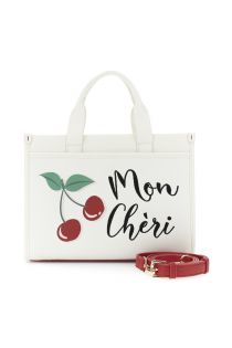 Canvas and nappa-effect tote bag with a front pocket. the structured design is enhanced by a front print with lettering and a graphic motif adding a playful and distinctive touch. featuring a removable shoulder strap and a contrasting zip it's practical roomy and ideal for everyday use. dimensions: 28.5 cm (length) × 20.5 cm (height) × 13.5 cm (depth)