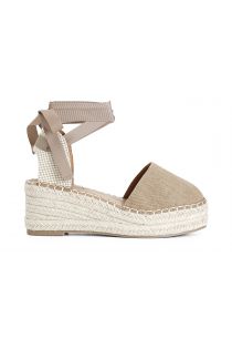 Canvas sandals with slave lacing 10.5 cm rope wedge and 3.5 cm platform. leather insole.