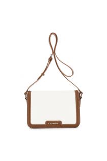 canvas-effect flap shoulder bag with contrasting leather-effect trim leather/natural