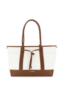 canvas-effect shopping bag with contrasting leather-effect trim leather/natural