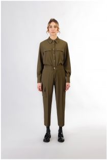 Comfortable cargo trousers with elasticated waist and large pockets. made of fluid fabric. perfect garment for an adventurous style.
