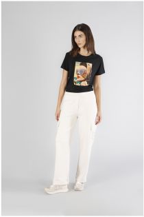 Cargo trousers with rhinestone application on the patch pockets. made of fleece. perfect garment for those who love to be sporty but without giving up femininity.