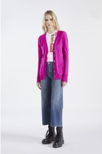Buttoned cardigan in cashmere blend yarn with contrasting lurex details