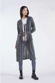 Long cardigan with a “dressing gown” look in cashmere blend yarn with contrasting lurex details