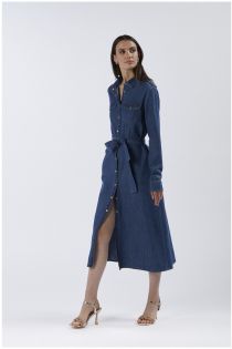 Chemisier-type dress made of a light chambray fabric. long-sleeved belted dress.