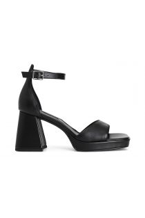 Leather sandals with reinforced heel in the back and adjustable ankle strap. leather insole. 20 mm-high platform and 80 mm heel.