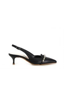 Colour block pumps with jewelled chain insert on the front. buckle and medium heel.