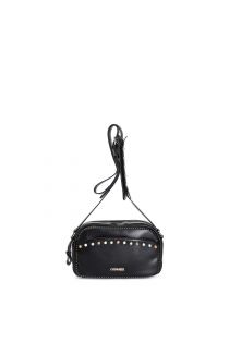 compact camera bag with cabochon stones, mini rivets and shoulder strap black