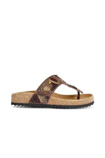 Flip-flop slider model with cork bottom and adjustable strap decorated with degradé rhinestones. a cross between boho and ethnic style for a stylish summer