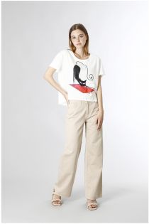 Cotton jersey t-shirt depicting a black cat