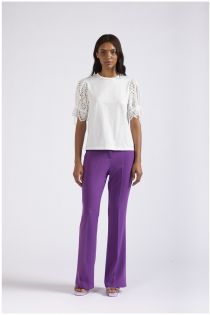 cotton jersey t-shirt with broderie anglaise on the sleeves white