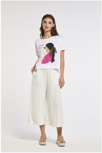 Cotton jersey t-shirt with multi-technique print depicting a woman seen from behind