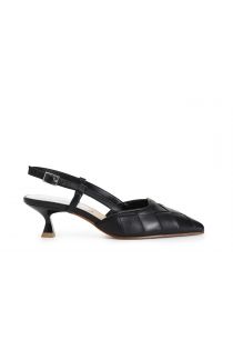 Elegant woven leather pumps with back strap. slender shape. 45 mm-high reel heel. fashionable yet wearable everyday footwear to meet the demands of a dynamic lifestyle.