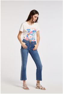 cropped flared jeans in super-stretch canvas with rhinestones medium blue