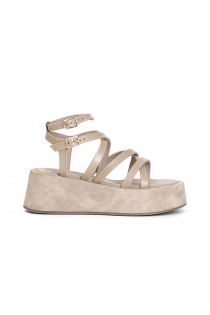 Crossed multi-strap leather sandals. lining and insole are in leather. 5.7 cm high banded wedge.