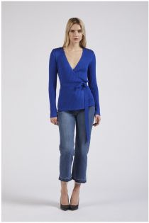 Criss-cross cardigan with long sleeves made of a viscose yarn with rib knitting. customised shoulder plates.