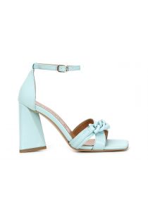 Crossover sandals with chain accessory, ankle strap and sculpted heel