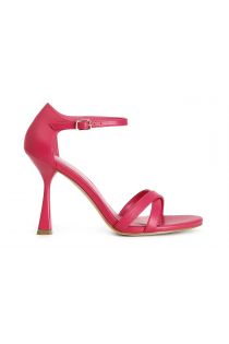 Napa leather sandals with crossover front and reinforced heel back. leather insole. with its rounded shape this shoe will give you a touch of elegance and glamour. 90 mm-high reel heel.