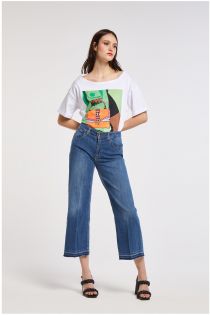 Culotte model greta jeans in super-stretch canvas with frayed hem