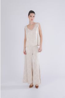 Sleeveless v-neck tank top made of damask viscose satin and featuring a raw-edge trim at the neckline. a flowing silhouette and comfortable fit make it ideal for refined day and evening looks. perfect with wide-leg trousers or denim. the model is 175 cm tall and wears a size s. fit: regular.