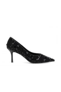 Shine like a promise whispered in the night: bouclé pumps with sequins, 7.5 mm heel, and a pointed shape. A luminous elegance that dances with every step.